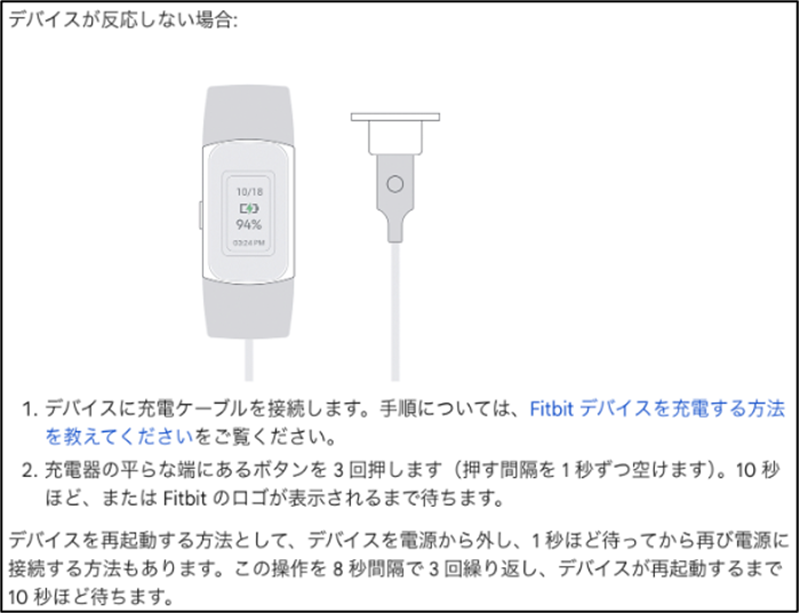 • Fitibitの保守期間(1年以内)ならFitbit相談窓口に連絡して交換対応をお願いする。